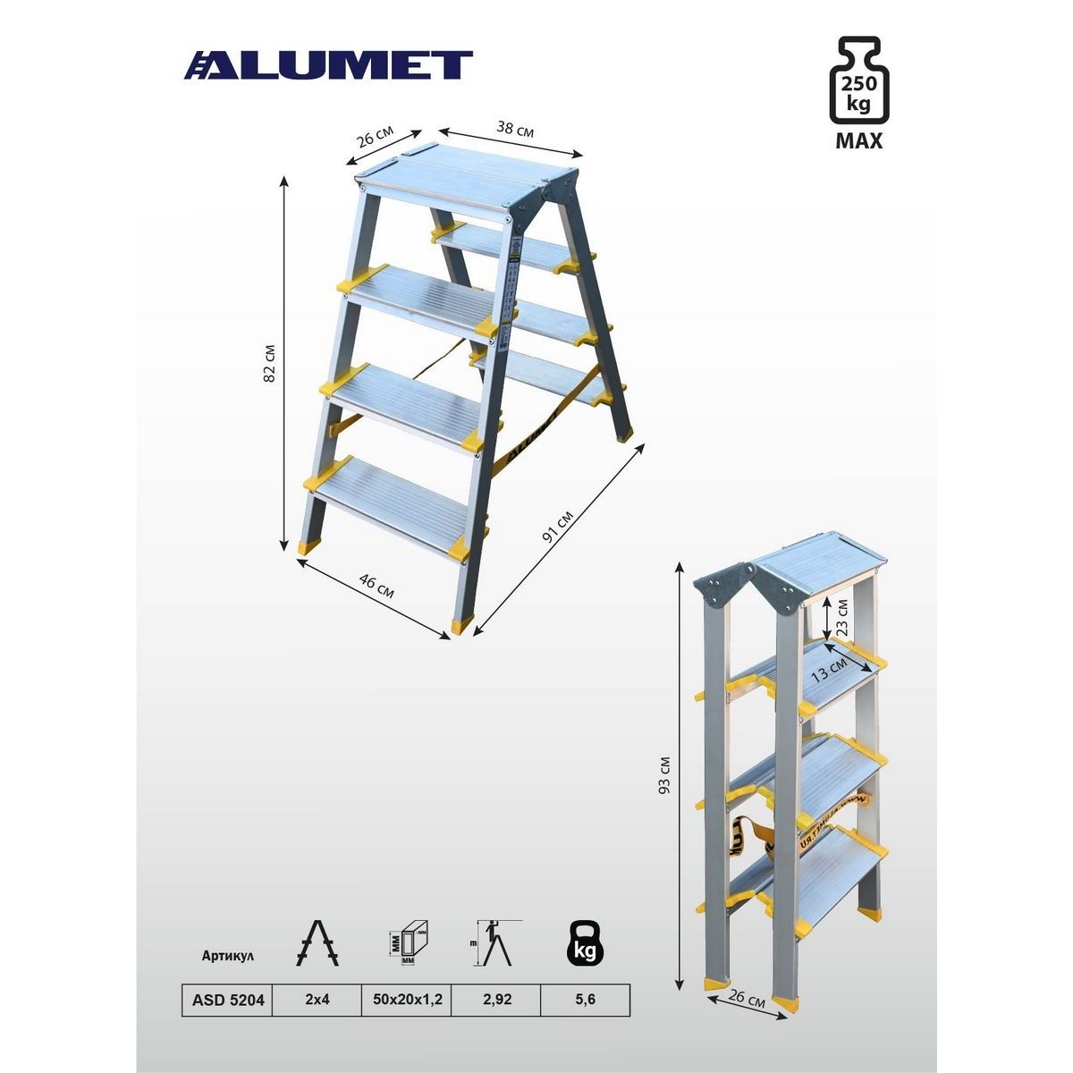 Стремянка алюминиевая Алюмет ASD 5204