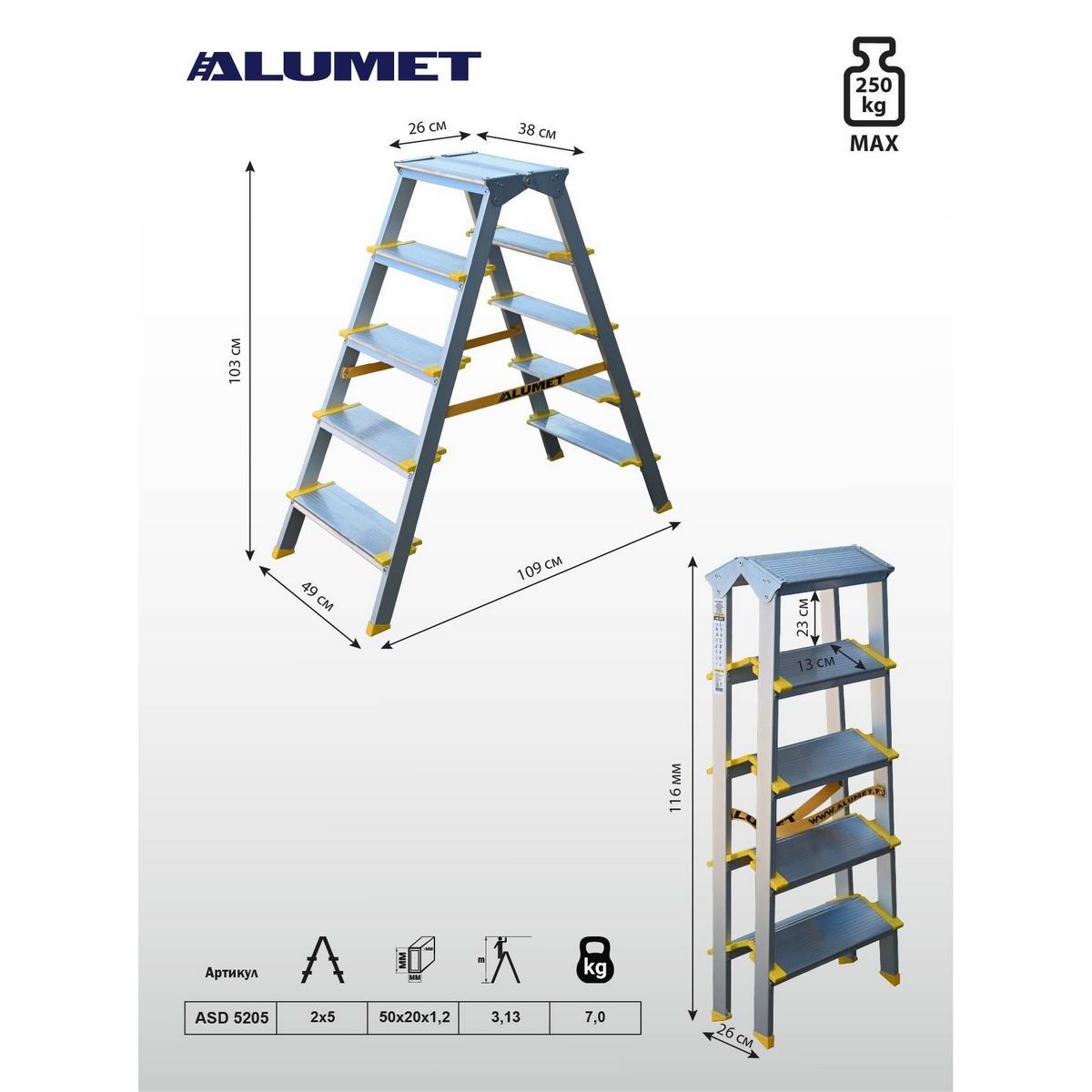 Стремянка Alumet ASD 5205 2х5 двухсторонняя с анодированным покрытием и широкими ступенями ASD 5205