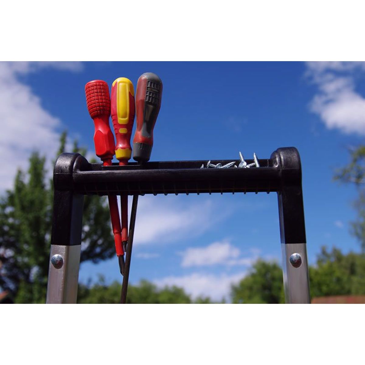 • Поручень оснащен крюком для ведра и имеет лоток для инструмента и крепежа.
