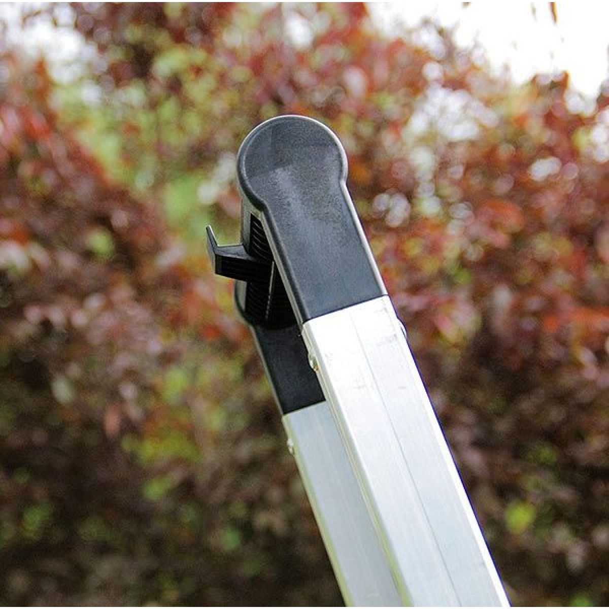 - Оригинальное соединение передней и задней секций позволило уменьшить размер стремянки в собранном виде до 8 см (до ширины ступени).