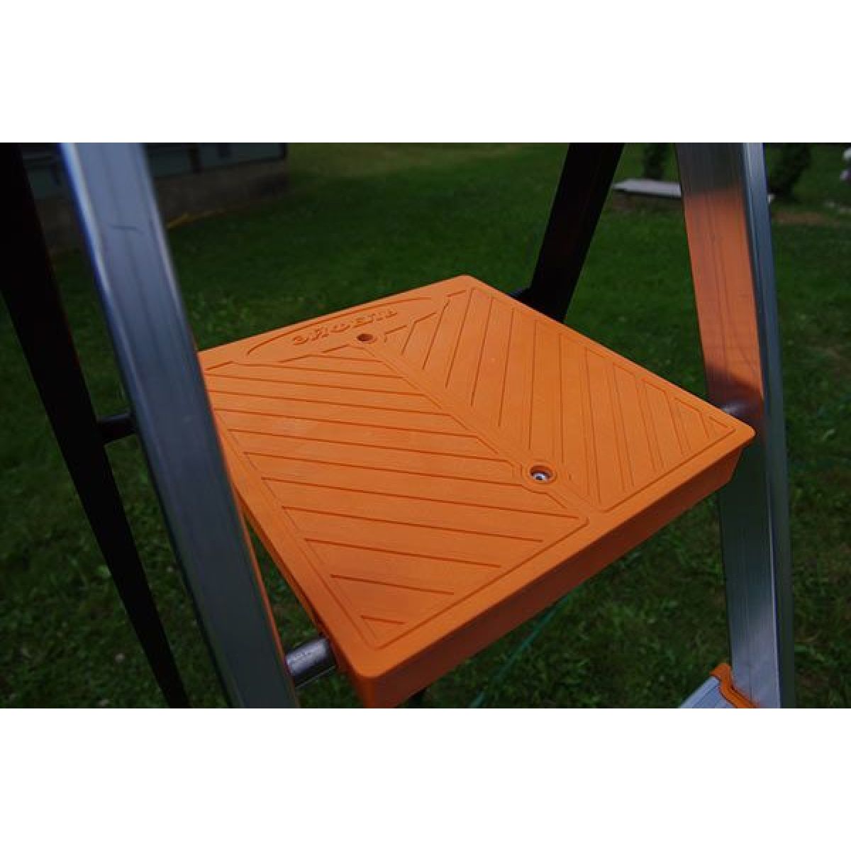 - Ступени рифленые (ширина 80 мм) надежно приклепаны к стойкам – «двойная клепка» – и защищены пластиковыми заглушками.