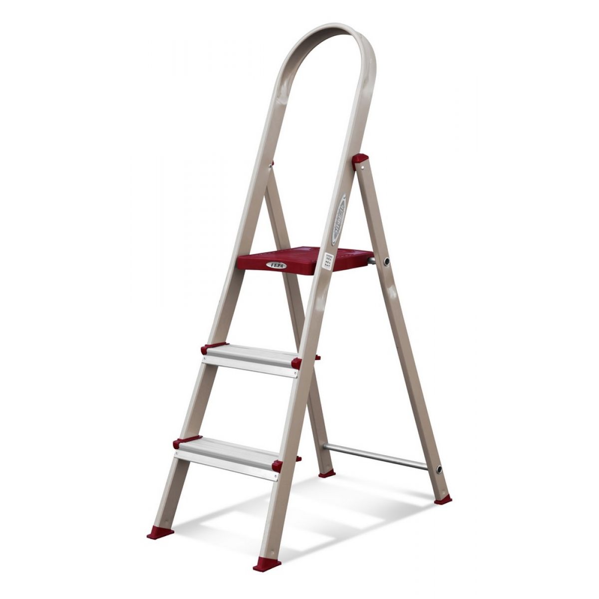 - Стремянка изготовлена из окрашенного алюминия, который не оставляет грязные следы на руках.