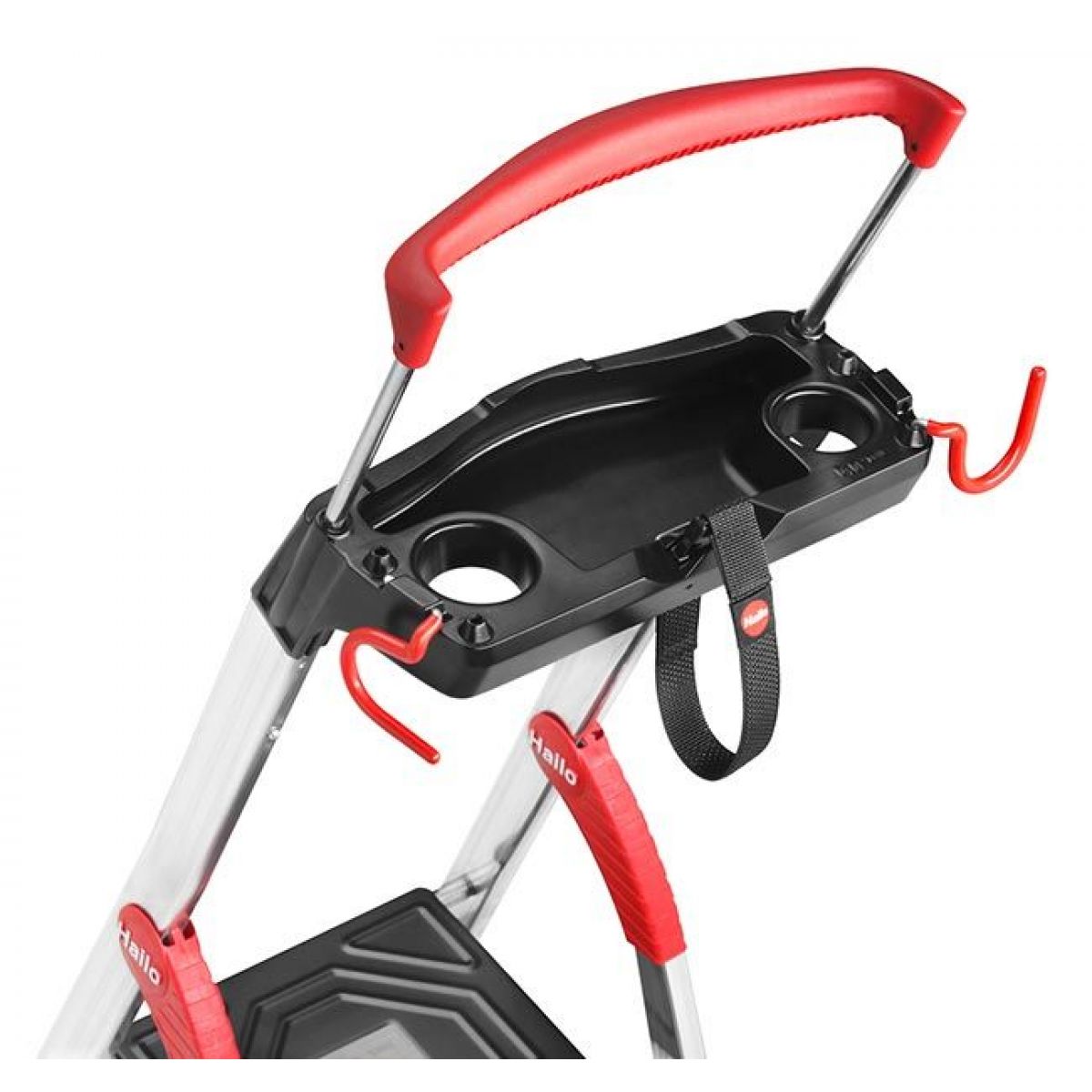 - Выдвигающийся поручень делает работу на стремянке еще более безопасной и комфортной