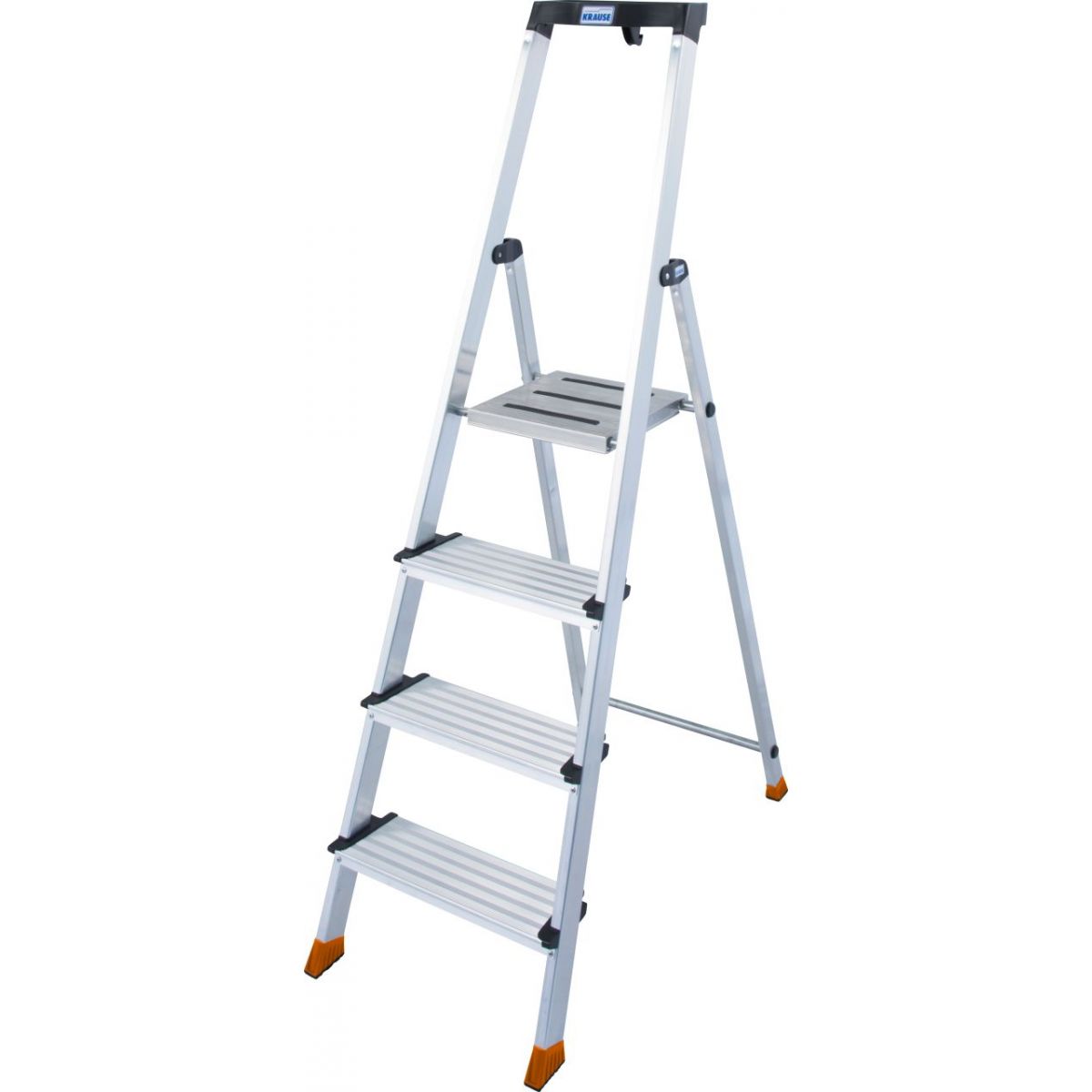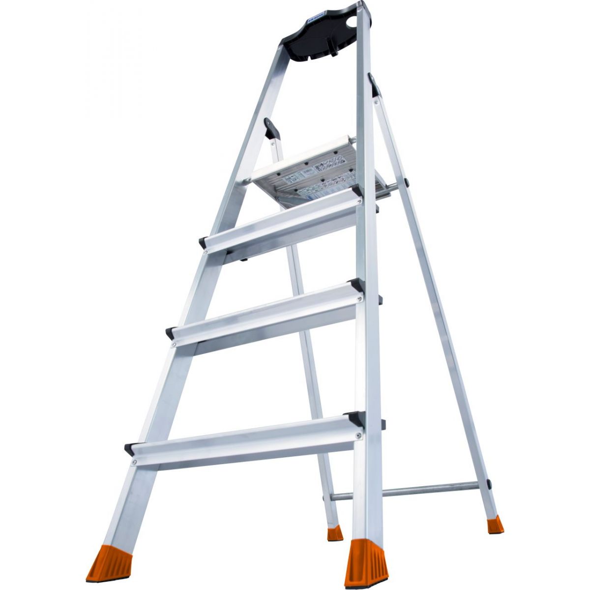 Алюминиевая лестница-стремянка с широкими ступенями- удобная и безопасная при подъеме и спуске.