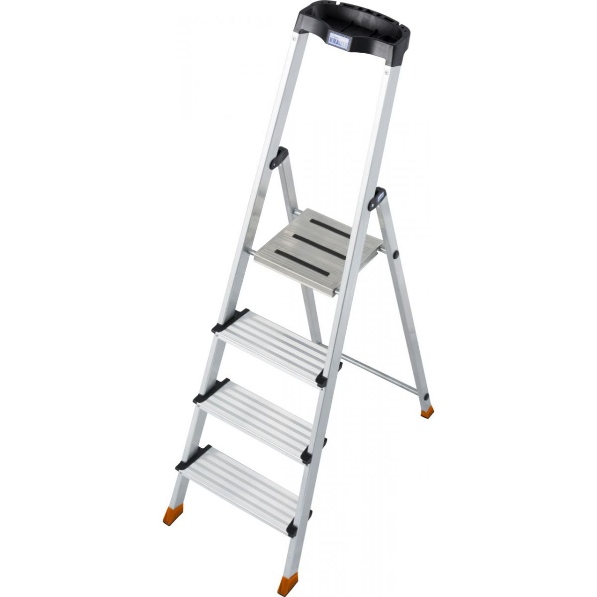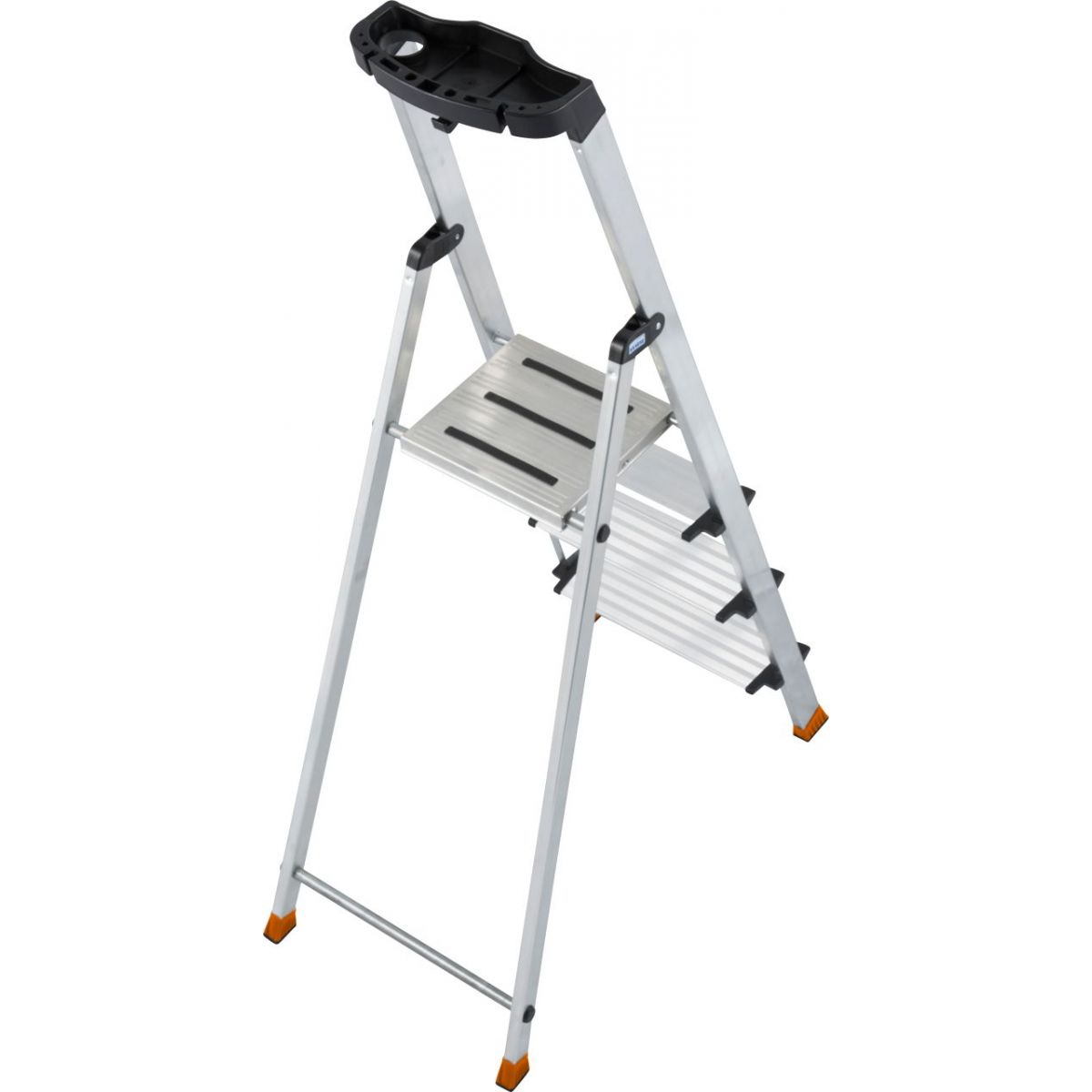 - Широкие ступени шириной 125 мм обеспечивают удобный и безопасный спуск и подъем по стремянке