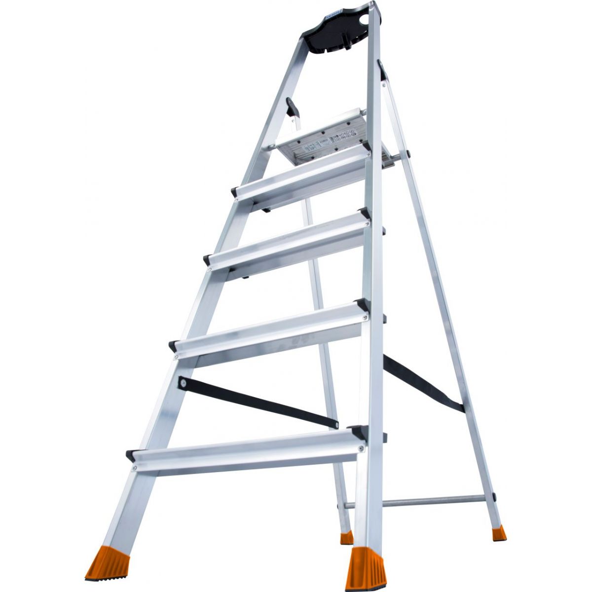 - Широкие ступени шириной 125 мм обеспечивают удобный и безопасный спуск и подъем по стремянке