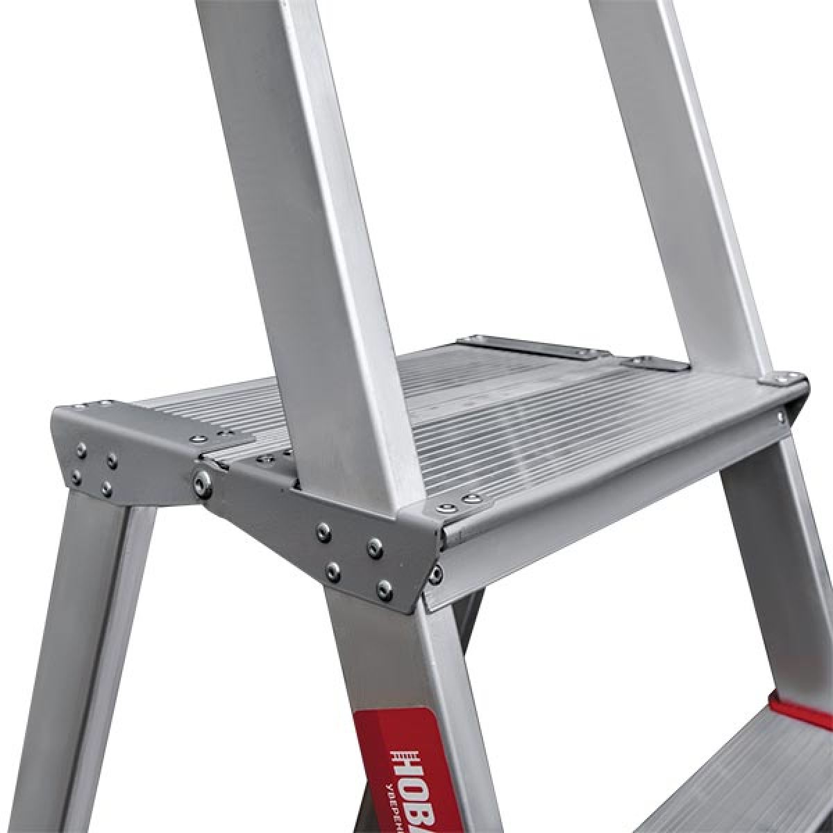 - Прочное крепление ступеней к боковинам шестью заклёпками для более высокой устойчивости конструкции