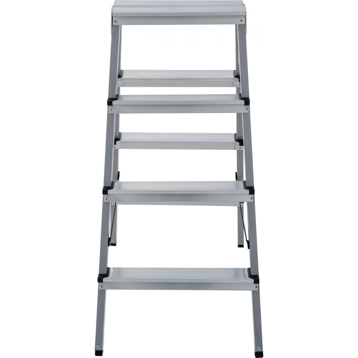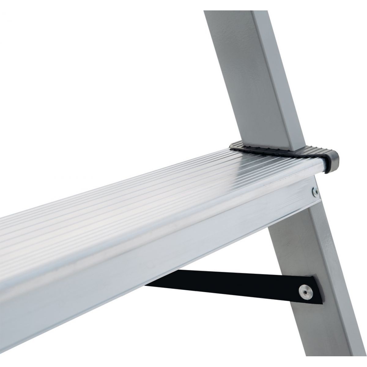 - Ориентация ступеней на обе стороны позволяет работать, не переставляя стремянку и экономя время