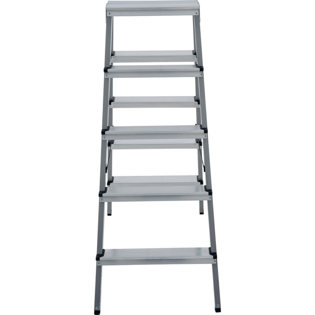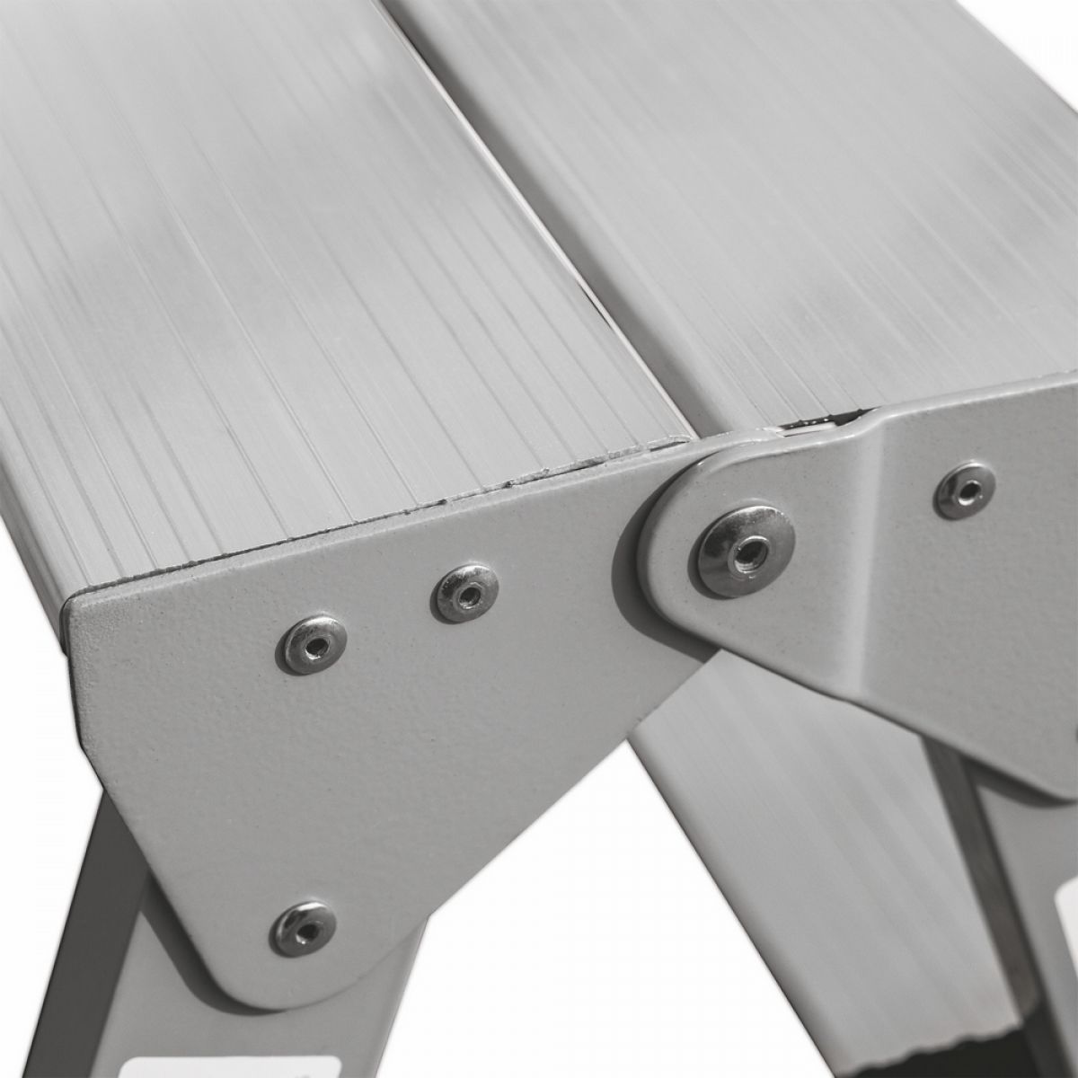 • Ориентация ступеней на обе стороны позволяет работать, не переставляя стремянку и экономя время