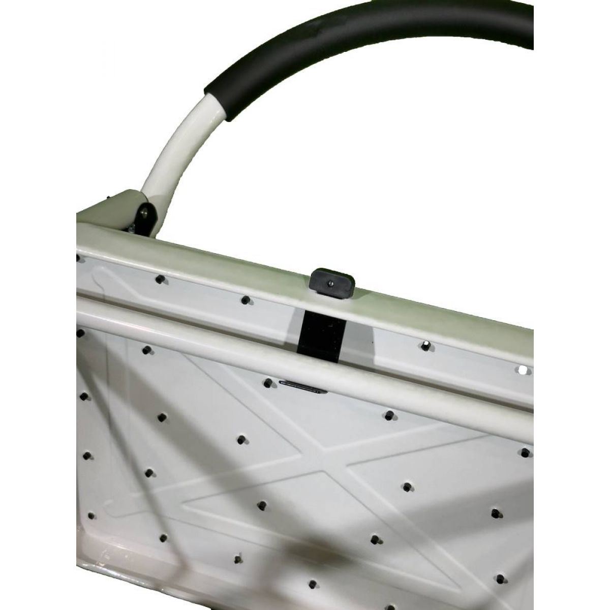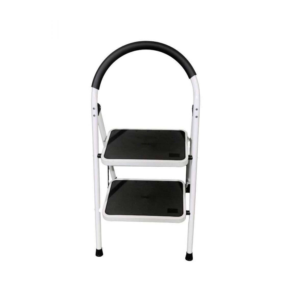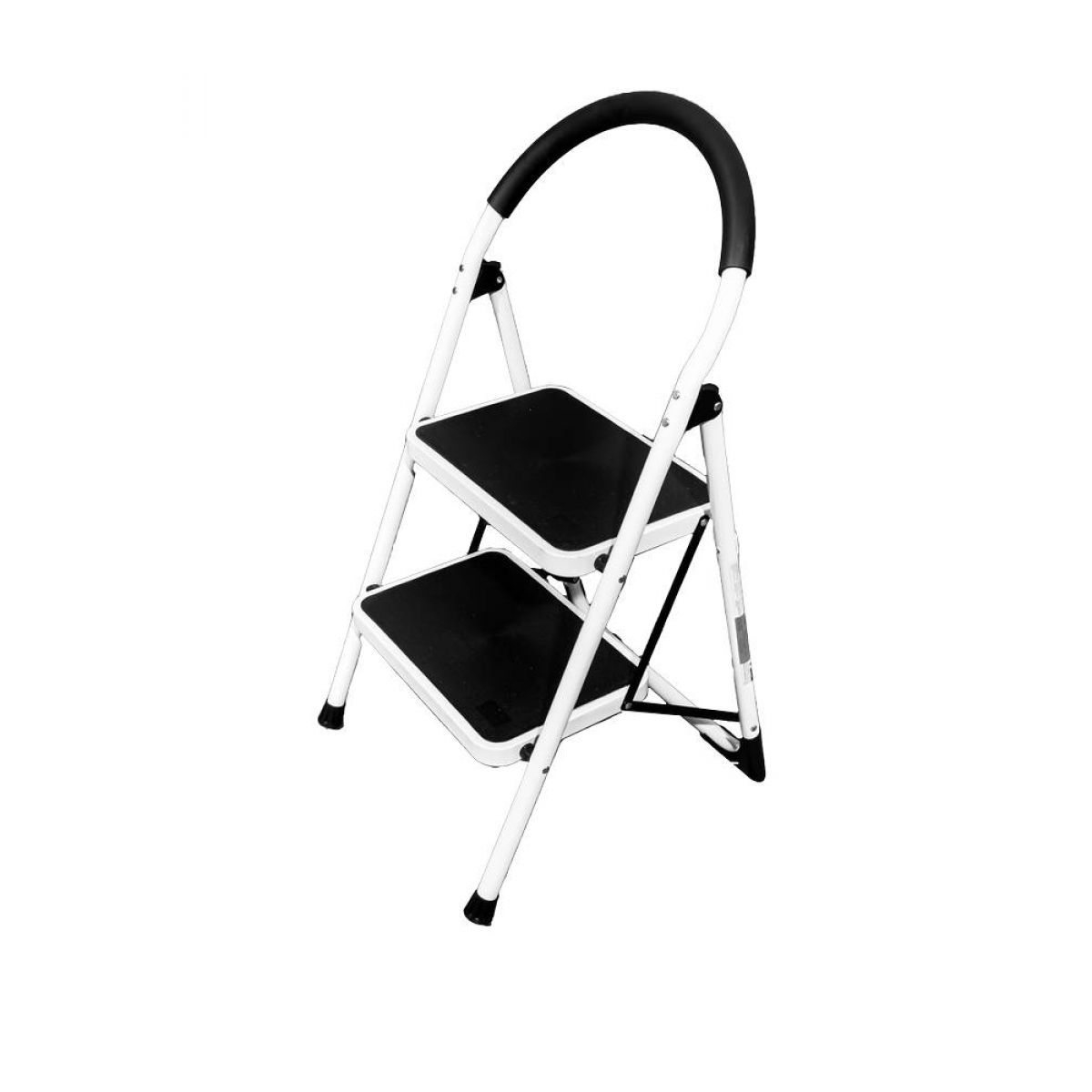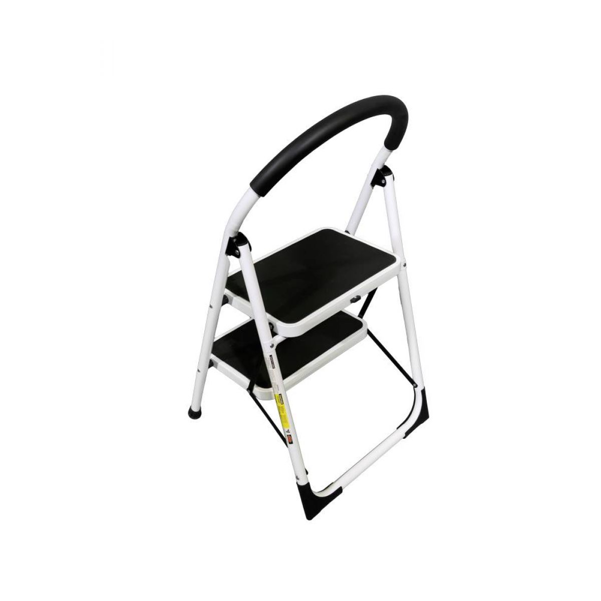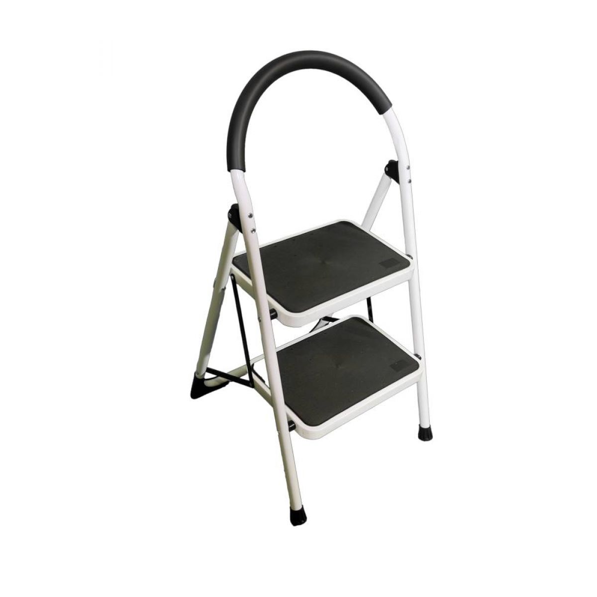 - Оснащена удобной ручкой покрытой мягким материалом, высотой 33 см., изгиб ручки сделан так, что стремянку можно использовать как стул.