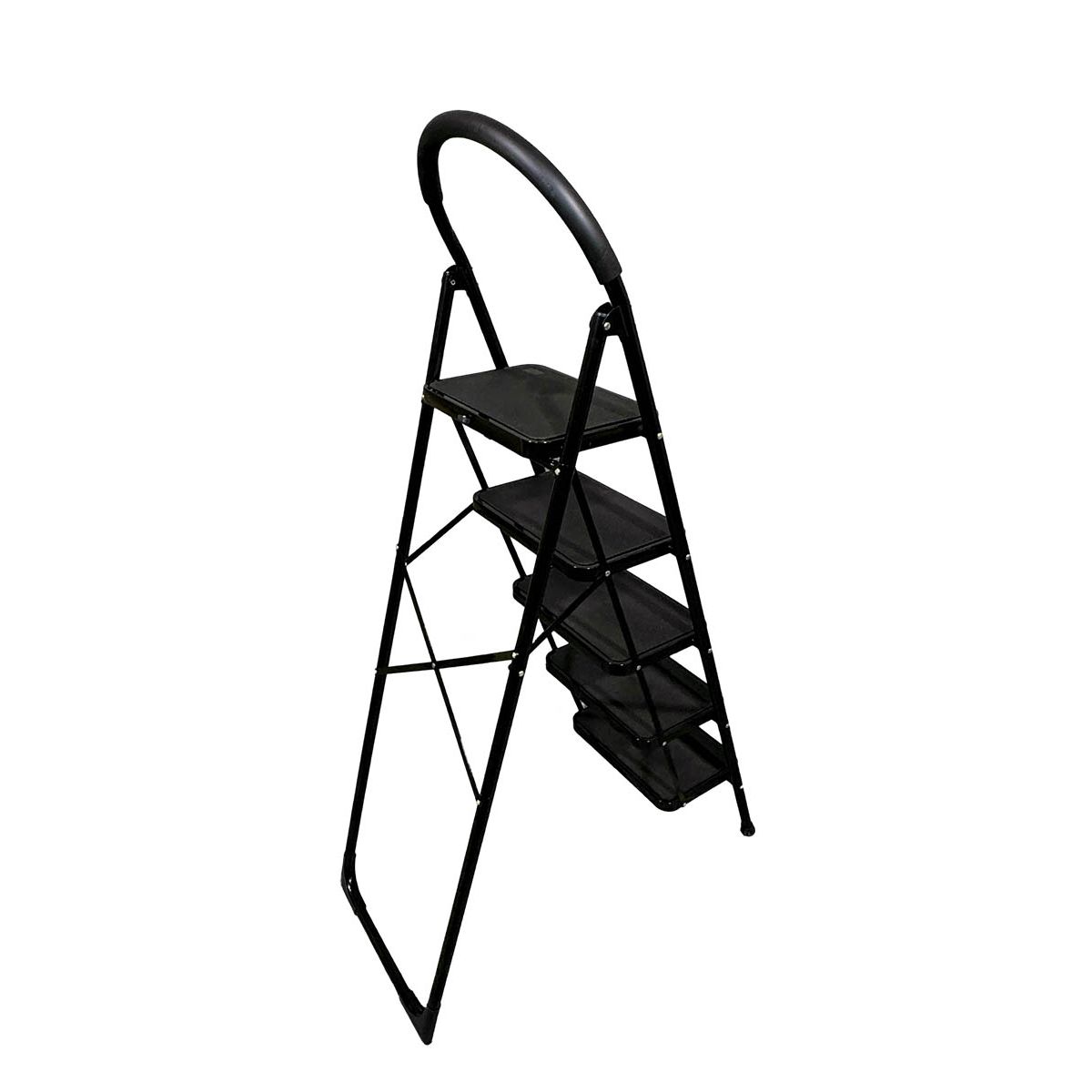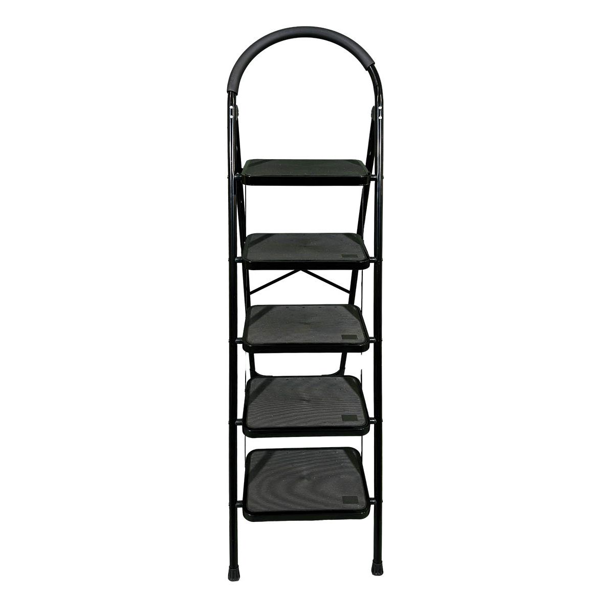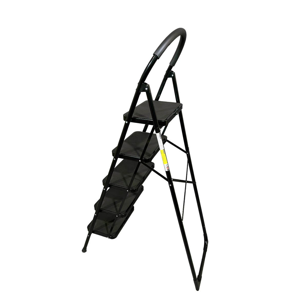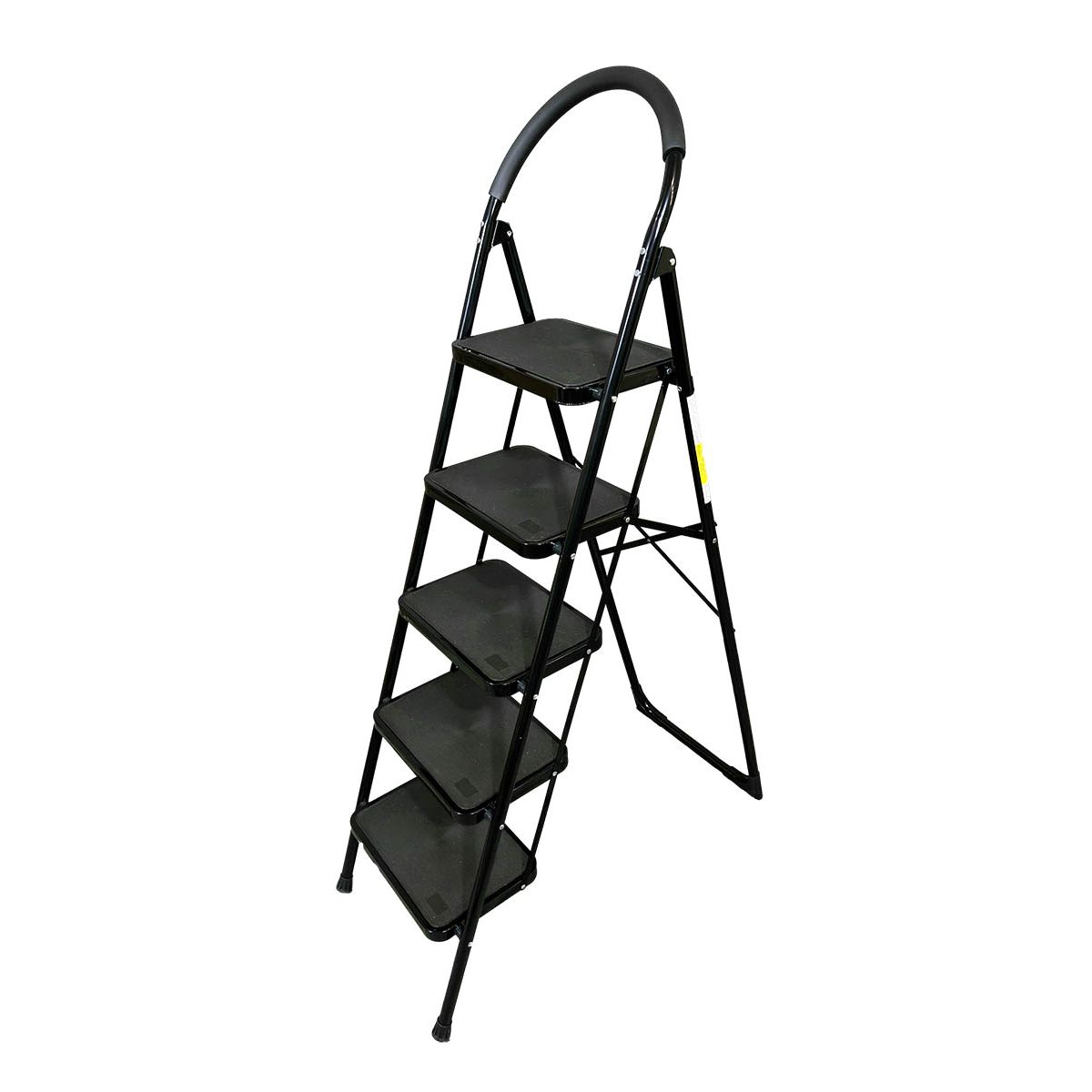 - Стремянка с 5 широкими стальными ступенями размером 260х380 ммОснащена удобной ручкой покрытой мягким материалом, высотой 33 см., изгиб ручки сделан так, что стремянку можно использовать как стул.