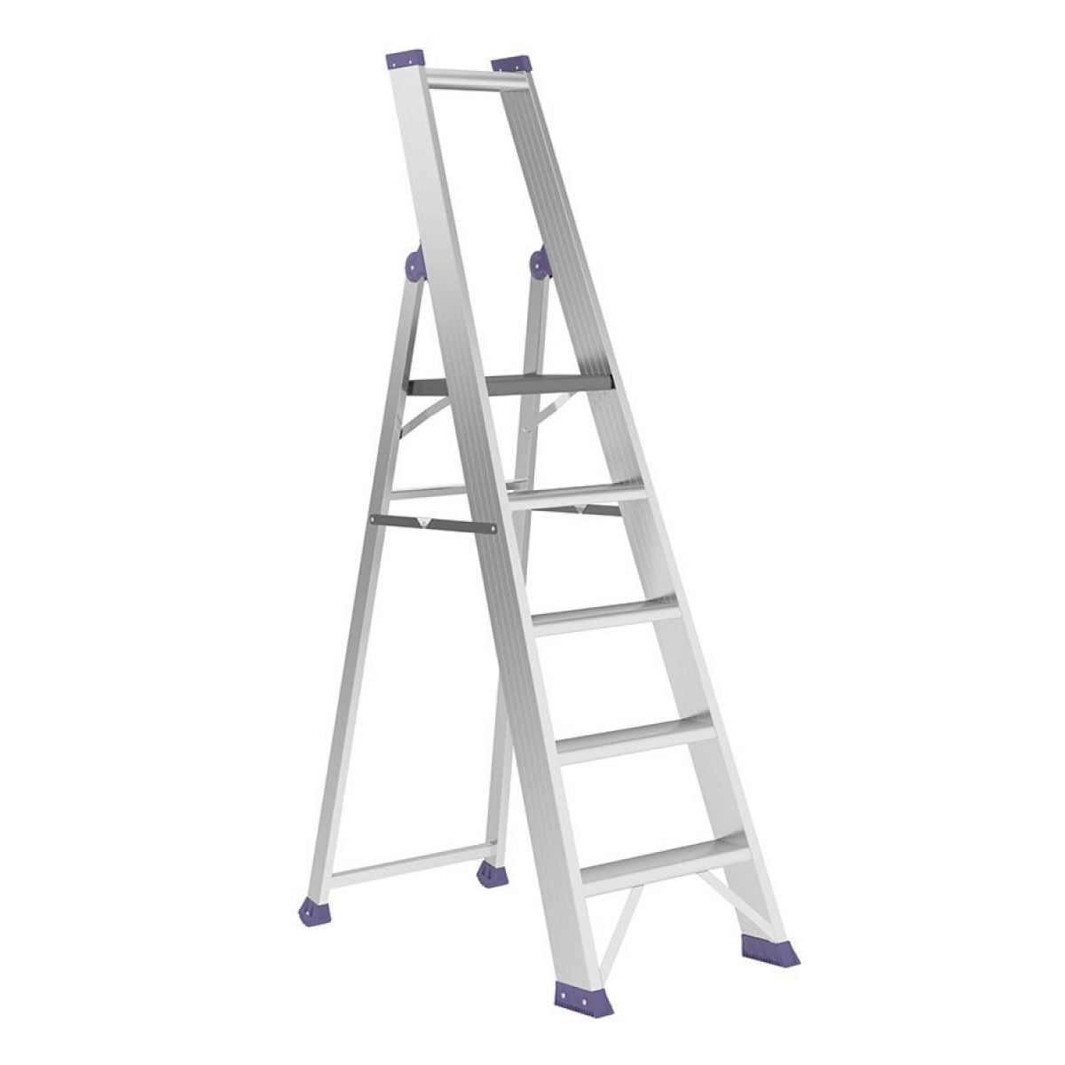 - Выполнена из алюминия, широкие рифленые ступени, на конце ограждения предусмотрено место для инструмента