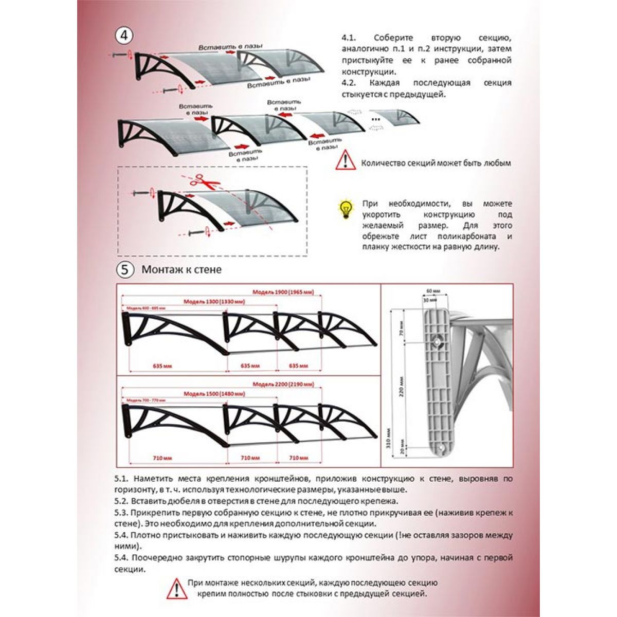- Размер козырька 1500х1050х310 мм, вес 5 кг.
