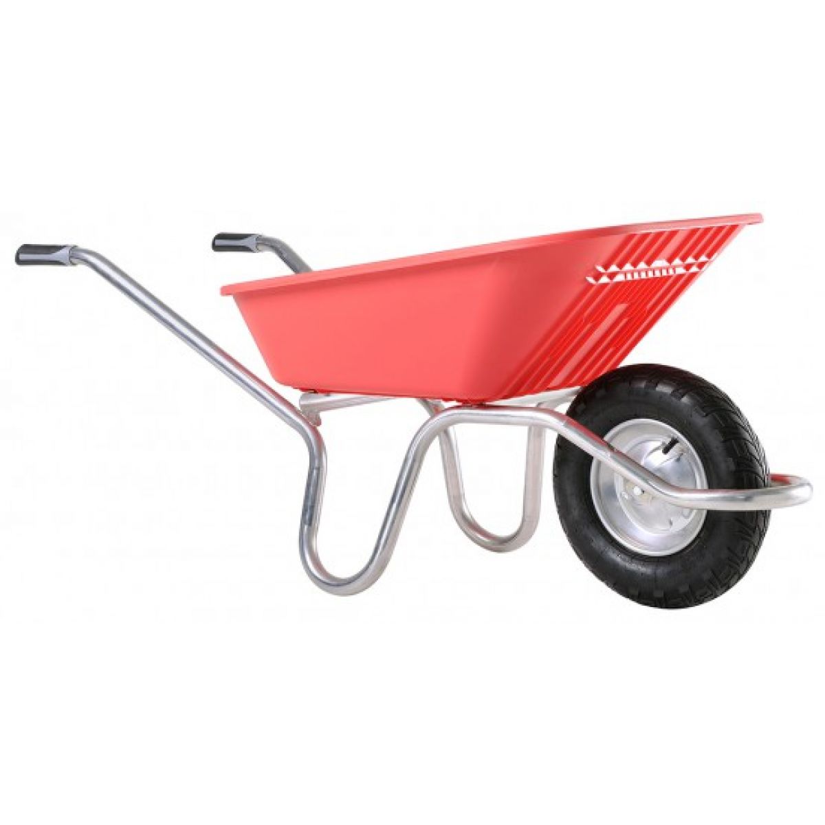 Форма кузова в виде трапеции имеет увеличенный размер переднего края, тем самым центр тяжести смещается ближе к колесу, облегчая перемещение груза и снижая нагрузку на спину и руки рабочего.