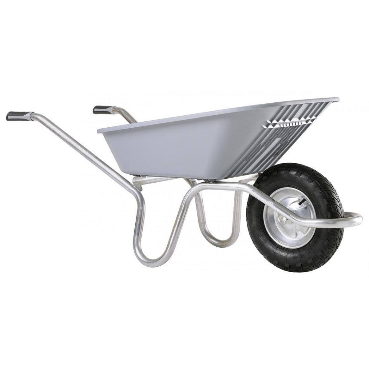 Форма кузова в виде трапеции имеет увеличенный размер переднего края, тем самым центр тяжести смещается ближе к колесу, облегчая перемещение груза и снижая нагрузку на спину и руки рабочего.