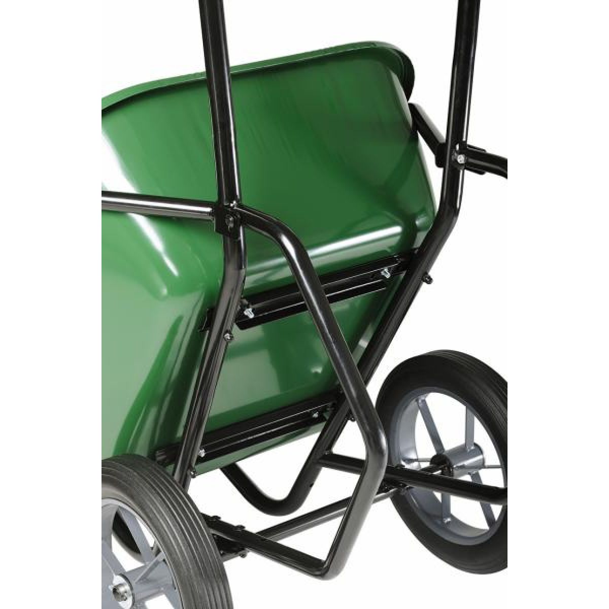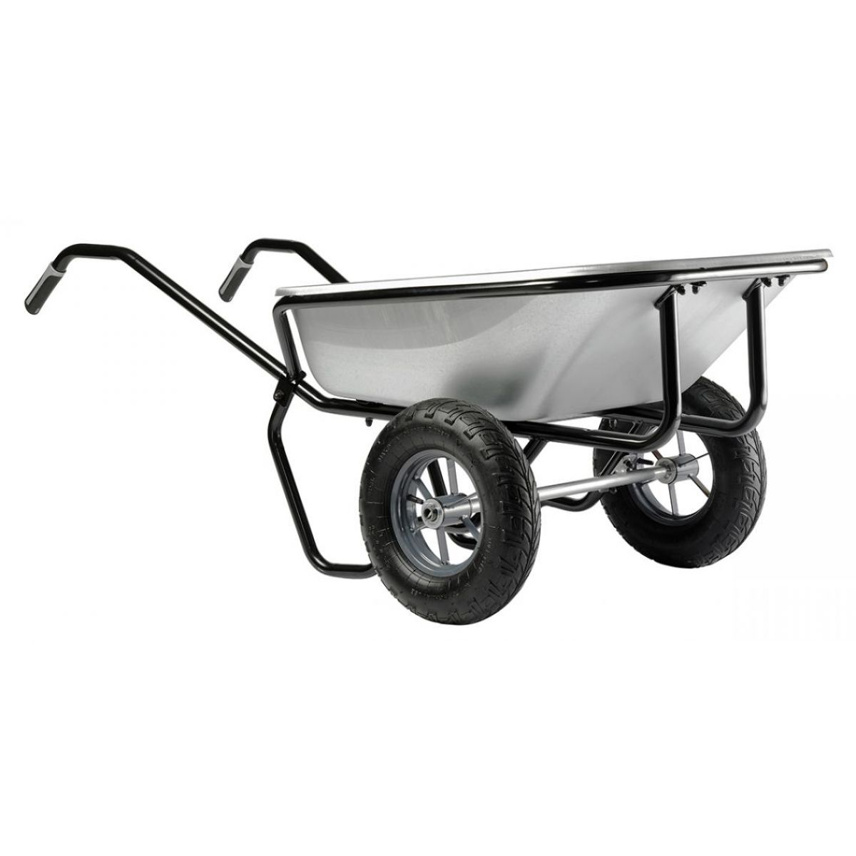Двухколесная строительная тачка. Усиленный кузов (увеличенная толщина стенки). Для посевных, земляных и строительных работ. Встроенная смазка колеса. Повышенная прочность шин.