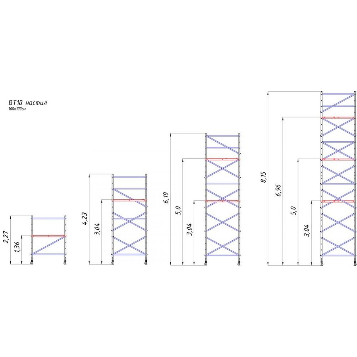 +Надстройки (арт. ВТ6 1610040)= рабочая высота 5,00 м(63,3 кг)