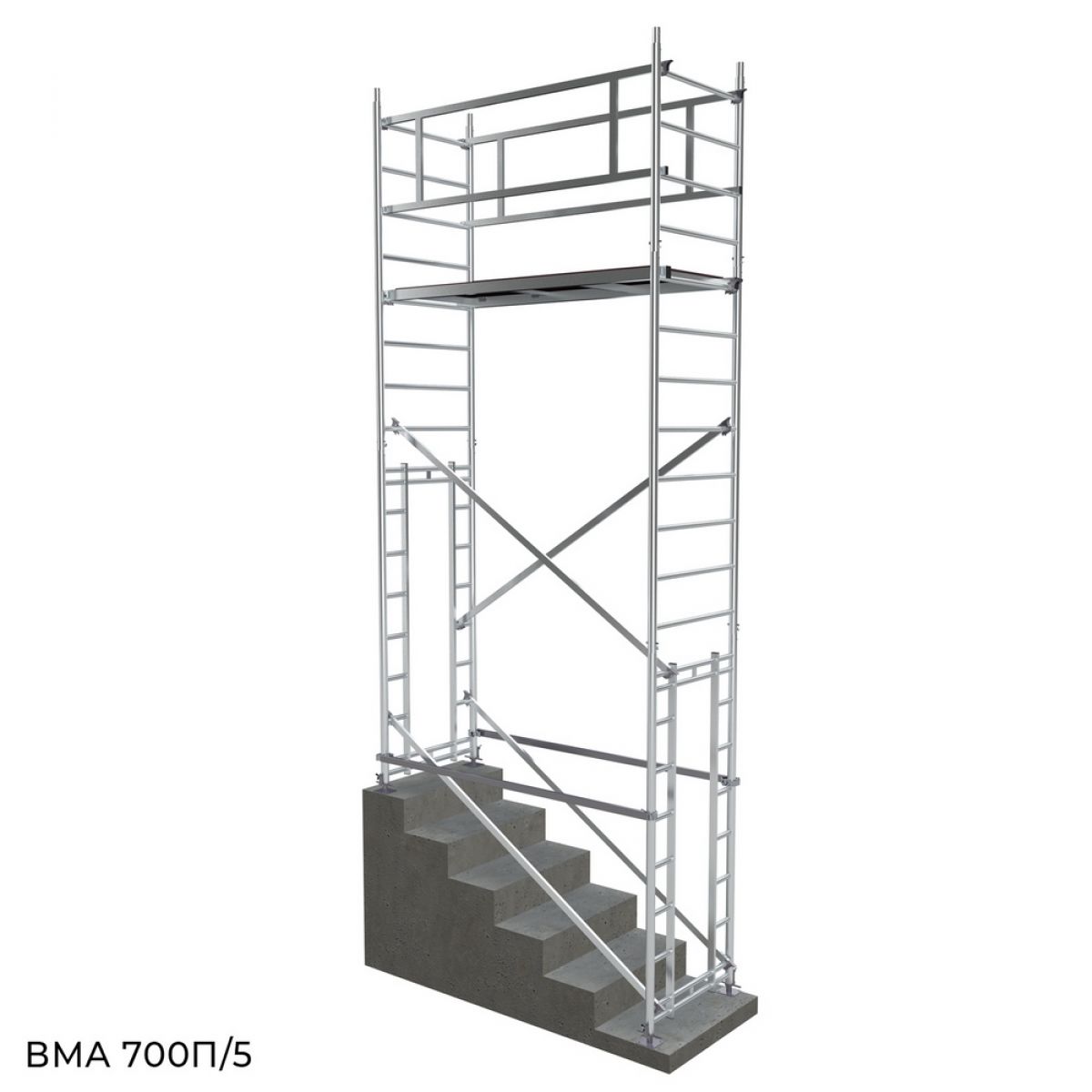 Вышка модульная алюминиевая Megal ВМА 700 П/5 для работы на лестничных маршах
