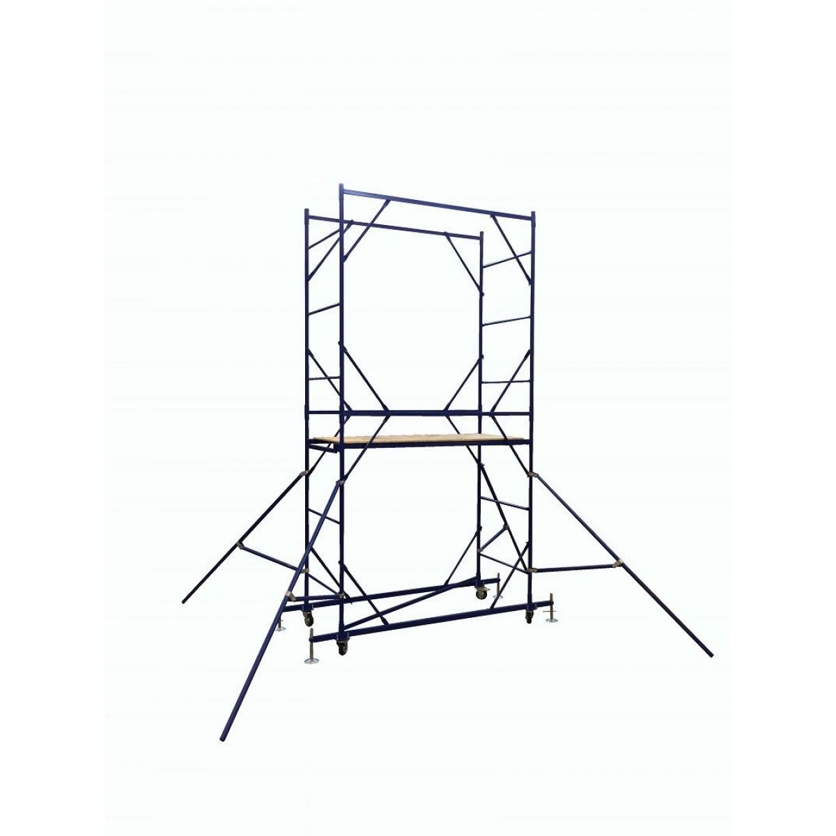 - Перемещение и фиксацию вышки в рабочем положение обеспечивают колеса с тормозами и винтовые опоры.