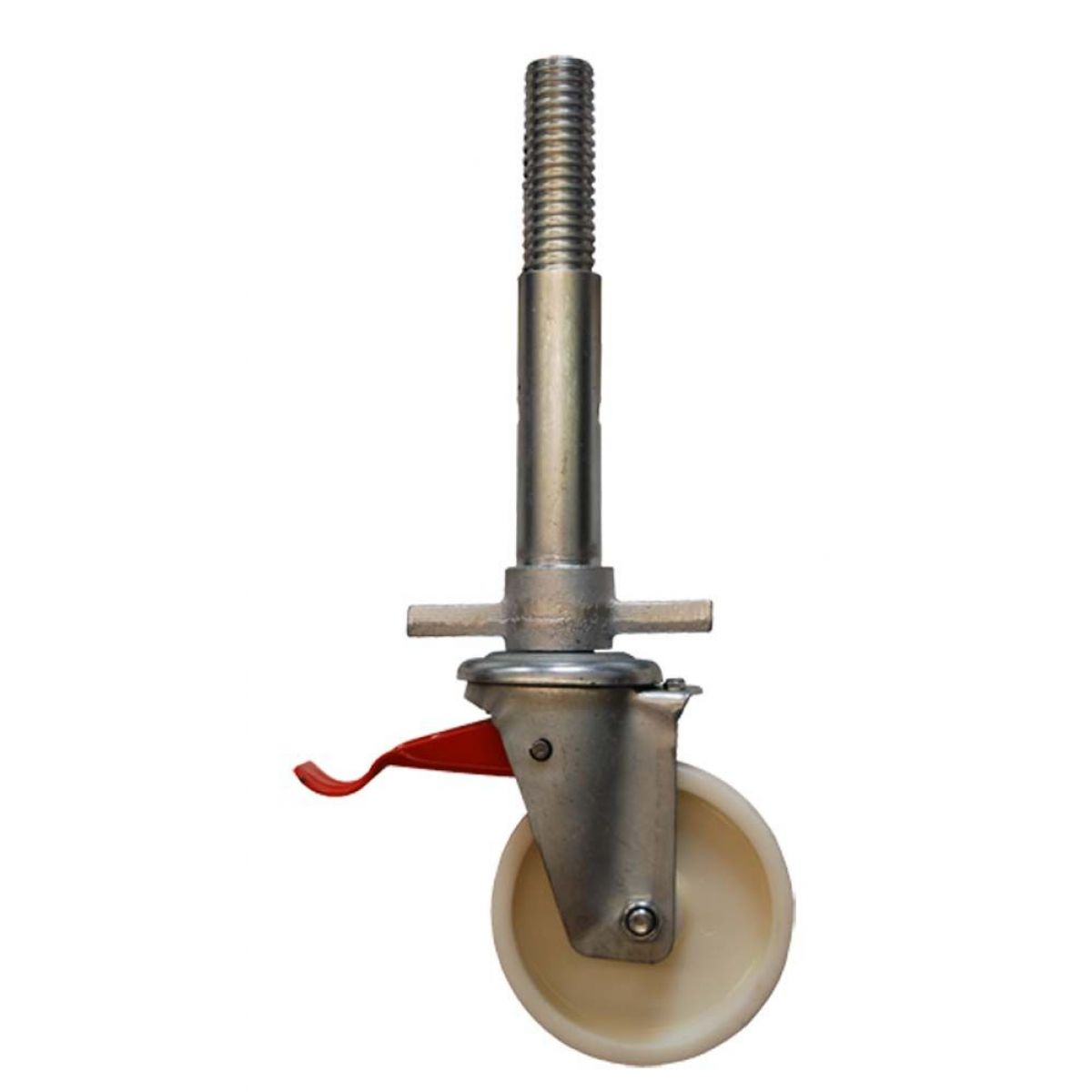 Пластиковый стопорящийся ролик O 150 мм с оцинкованным стальным винтовым домкратом.